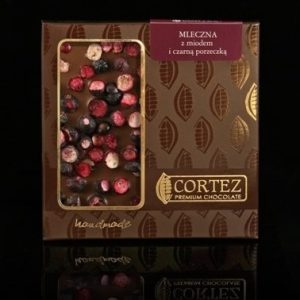 Czekolada ciemna z papryczkami i solą morską to powrót do źródeł… Połączenie ciemnej czekolady z papryczką chilli, to prawdziwy rarytas starożytnych Azteków! Dla uczczenia wilkich wypraw Cornando Corteza wzbogacony solą morską.